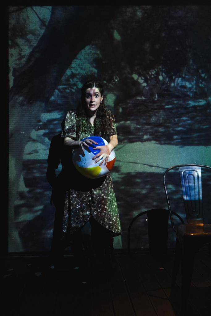 Ο χώρος του έργου είναι οι συνεχώς εναλλασσόμενες αναμνήσεις. Οι προβολές, η υπερβατική δύναμη του φωτός και της σκιάς και η μουσική μάς συντροφεύουν σε αυτή την κατάβαση ως οδηγός και ως παρηγοριά.